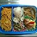 今日で今学期のお弁当は終わり。結局「理想」のお弁当とは程遠く…こんなに堕落するとは@理想 栄養バランスにも気をつけた、幼稚園児が喜びそうな可愛い(面白い)お弁当今学期最後のお弁当も結局昨晩の残り物とか、冷凍庫にストックしてあったお弁当用小分けおかずの処分という形になりましたー。・スパゲティ(ナポリタン)・梅ふりかけの一口お握り・ヤケクソチャンプルー(昨晩の残り物)ケチャップで味変身 *ゴーヤ、豚肉、エノキ、ニラ。(もやしは足が早いので除去)・きんぴらごぼう・ササミの紫蘇チーズ巻き・炒り玉子、ミニウィンナー全く可愛くも何とも無い所がミソ(笑毎日毎日、「疲れてるから明日のプールカードは×(プール不可)にしてー」としつこく言われ続けています。「見学」の場合、スーパーボールすくいとかがあるので、それがやりたくて仕方ないのは見え見え。で、毎日色々言い訳を考えては、前日から「明日の…」と言う訳だ。家に帰っても遊ぶとなると無茶苦茶元気だもん。もう、辟易して、今日だけは×にする事にした。1回やっておけば納得するだろう、と。甘いかな。