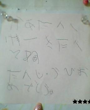 母、遊び呆けて(苦笑)夜中に帰宅してテーブル見れば うふふふふ最近、「ね」や「の」の丸の中に顔を描くのがマイブームのようです。Gospellers zaka tour 06-07 sergey