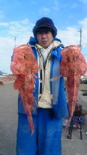 外房大原港~ オニカサゴに出船しました (^^)v ポイントは御宿沖 ε=ε=(ノ≧∇≦) 水深は150m~140mを狙いました p(^-^)q 開始早々に当たりがあり d=(^o^)=b 大きさも1.5kg~1.8kg主体の良型サイズ (^_^)v そして……………… 来ました~ \(^.^)/ 最大2.3kg (^^)d 時間までに オニカサゴを1匹~5匹(5匹×2名) 船中18匹 \(^^)/ 久々の納得釣果でした (^^)v 出船予定です ……↓…… 明日・1月11日の金曜日は マハタ&オニカサゴに出船いたします (^^)v 今のところ5名のお客さんから予約を頂いております m(._.)m 1月12日の土曜日は 一つテンヤのシャクリマダイに出船いたします (^^)v 今のところ2名のお客さんから予約を頂いております m(._.)m 1月13日の日曜日は 一つテンヤのシャクリマダイに出船いたします (^^)v 今のところ8名のお客さんから予約を頂いております m(._.)m 1月14日の月曜日は 午前中出船予定で 都合により午後から休船させて頂きます m(._.)m 1月17日の木曜日は 一つテンヤのシャクリマダイに出船いたします (^_^)v 今のところ3名のお客さんから予約を頂いております m(._.)m 1月20日の日曜日は ヒラメに出船いたします (^_^)v おかげさまで満船となりました~ \(^.^)/ ありがとうございます m(._.)m 1月23日の水曜日は オニカサゴに出船予定です (^^)v 3名からの出船となります m(._.)m 1月27日の日曜日は 一つテンヤのシャクリマダイに出船いたします (^^)v 今のところ3名のお客さんから予約を頂いております m(._.)m その他の日は、まだ予約が入っておりませんので (´д`|||) 出船日も含め、乗船のお問い合わせを、お待ちしております m(__)m 大原港の優漁船の休日は、第一・第三の月曜日です ゜゜゜゜゜-y(^。^)。o0○ お知らせです ……↓…… 12月1日から投入時間が6時になりました m(._.)m お客さんへのお願いです ……↓…… 勇盛丸では、常にお客さんの安全を考えて操業しております 【安全1番・楽しさ2番・最後に釣果はついてくる♪♪♪】《文明堂カステラcmのパクりですが………(^-^ゞ》 をテーマに 命を預かる商売ですので、いつも慎重かつ冷静な操船を心掛けております その為には、お客さんのご協力が不可欠ですので 生意気な言い方かもしれませんが 海の上では、マナーと船長の指示を必ず守ってくださるよう、お願いいたします m(__)m