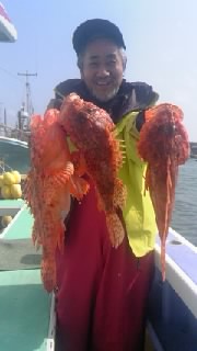 外房大原港~ オニカサゴに出船しました (^^)v ポイントは御宿沖 ε=ε=(ノ≧∇≦)ノ 水深は130m前後を狙いました ( ☆∀☆) 朝から当たり良く d=(^o^)=b ダブルもありました \(^.^)/ たまにサメにジャマされましたが (*`Д´)ノ!!! 良型オニカサゴが釣れるので我慢 (≧∇≦) 時間までに 大きさ0.6kg~2kgの大型オニカサゴを 2匹~8匹 \(^.^)/ 船中22匹を釣り上げてくれて m(._.)m その他 沖メバル ノドグロカサゴ ムシガレイ も釣れました (^^ゞ いいとなりましたね (^^)v 出船予定です ……↓ 4月26日の金曜日は オニカサゴに出船いたします d=(^o^)=b 今のところ3名のお客さんから予約を頂いております m(._.)m 4月27日の土曜日は オニカサゴに出船いたします (≧∇≦) 今のところ2名のお客さんから予約を頂いております m(._.)m この日の午後からは 一つテンヤのシャクリマダイに出船いたします p(^^)q 今のところ2名のお客さんから予約を頂いております m(._.)m 4月28日の日曜日は イサキに出船いたします ( ☆∀☆) 今のところ5名のお客さんから予約を頂いております m(._.)m 4月29日の月曜日は オニカサゴに出船いたします (^^)v 今のところ2名のお客さんから予約を頂いております m(._.)m この日の午後からは 一つテンヤのシャクリマダイに出船いたします (≧∇≦) 今のところ2名のお客さんから予約を頂いております m(._.)m 5月3日の金曜日は ヤリイカ&オニカサゴに出船いたします d=(^o^)=b 今のところ4名のお客さんから予約を頂いております m(._.)m 5月5日の日曜日は 午後から一つテンヤのシャクリマダイに出船いたします (^^)v 今のところ3名のお客さんから予約を頂いております m(._.)m 5月6日の第一月曜日は出船日となり d=(^o^)=b 翌日7日の火曜日が定休日となります (^。^)y-゜゜゜ 5月14日の火曜日は オニカサゴに出船いたします p(^^)q 乗船のお客さん募集中です m(._.)m 5月18日の土曜日は 一つテンヤのシャクリマダイに出船いたします d=(^o^)=b 今のところ2名のお客さんから予約を頂いております m(._.)m この日の午後からも 一つテンヤのシャクリマダイに出船いたします (^^)v おかげさまで満船となりました~ \(^.^)/ ありがとうございます m(._.)m その他の日は、まだ予約が入っておりませんので (´д`|||) 出船日も含め、乗船のお問い合わせを、お待ちしております m(__)m 問い合わせは 090 2932 3575 0470 62 2086 までお願いします m(._.)m 大原港の優漁船の休日は、第一・第三の月曜日です ゜゜゜゜゜-y(^。^)。o0○ お知らせです ……↓…… 5月19日の日曜日に 【第8回探見丸いすみ市大原港船釣り大会】 が開催されます d=(^o^)=b 勝負魚は……………………… 【イサキ】です p(^^)q ヒシカゴ40号を使用して(貸し出しあります) (^^)v 大きさ23cm以上のイサキ五匹までの合計重力で競います ( ☆∀☆) レディース賞(女性の上位1名) ヤングアングラー賞(小学生以下の参加者全員に渡します) 勇盛丸では定員14名で募集させて頂いております中 (^_-)≡★ 今のところ7名の方からエントリーがありました m(._.)m お問い合わせをお待ちしております m(._.)m お客さんへのお願いです ……↓…… 勇盛丸では、常にお客さんの安全を考えて操業しております 【安全1番・楽しさ2番・最後に釣果はついてくる♪♪♪】《文明堂カステラcmのパクりですが………(^-^ゞ》 をテーマに 命を預かる商売ですので、いつも慎重かつ冷静な操船を心掛けております その為には、お客さんのご協力が不可欠ですので 生意気な言い方かもしれませんが 海の上では、マナーと船長の指示を必ず守ってくださるよう、お願いいたします m(._.)m