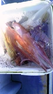 外房大原港~ ヤリイカ&オニカサゴに出船しました (^^)v 始めはヤリイカです p(^^)q ポイントは 勝浦沖 ε=ε=(ノ≧∇≦)ノ 水深は200m前後を狙いました ( ☆∀☆) 朝の内はサバの攻撃に遭いましたが (`_´メ) 次第に少なくなり (^.^) 大型ヤリイカが釣れ始め d=(^o^)=b 4点・5点掛けが多々ありました \(^.^)/ 9時までに大型ヤリイカを 10杯~32杯 (^^)v 次はオニカサゴです p(^^)q ポイントは御宿沖 ε=ε=┏(・_・)┛ 水深は130m前後を狙いました ( ☆∀☆) 大きさ1.2kg~1.7kgのオニカサゴを 1匹~3匹 その他 外道で ノドグロカサゴ オキメバル も釣れました (^^)b いい釣行となったと思います d=(^o^)=b 出船予定です ……↓…… 4月18日の木曜日は ヤリイカ&イカ生き餌の泳がせ釣りに出船いたします (^^)v 今のところ3名のお客さんから予約を頂いております m(._.)m 4月19日の金曜日は オニカサゴに出船いたします p(^^)q 乗船のお客さん募集中です m(._.)m 4月20日の土曜日は オニカサゴに出船いたします (^^)v 今のところ5名のお客さんから予約を頂いております m(._.)m 4月21日の日曜日は おかげさまで満船となりました~ \(^.^)/ ありがとうございます m(._.)m 4月28日の日曜日は イサキに出船いたします ( ☆∀☆) 今のところ5名のお客さんから予約を頂いております m(._.)m 5月5日の日曜日は 午後から一つテンヤのシャクリマダイに出船いたします (^^)v 今のところ3名のお客さんから予約を頂いております m(._.)m 5月6日の第一月曜日は出船日となり d=(^o^)=b 翌日7日の火曜日が定休日となります (^。^)y-゜゜゜ 5月14日の火曜日は オニカサゴに出船いたします p(^^)q 乗船のお客さん募集中です m(._.)m 5月18日の土曜日は 一つテンヤのシャクリマダイに出船いたします d=(^o^)=b 今のところ2名のお客さんから予約を頂いております m(._.)m この日の午後からも 一つテンヤのシャクリマダイに出船いたします (^^)v おかげさまで満船となりました~ \(^.^)/ ありがとうございます m(._.)m その他の日は、まだ予約が入っておりませんので (´д`|||) 出船日も含め、乗船のお問い合わせを、お待ちしております m(__)m 問い合わせは 090 2932 3575 0470 62 2086 までお願いします m(._.)m 大原港の優漁船の休日は、第一・第三の月曜日です ゜゜゜゜゜-y(^。^)。o0○ お知らせです ……↓…… 5月19日の日曜日に 【第8回探見丸いすみ市大原港船釣り大会】 が開催されます d=(^o^)=b 勝負魚は……………………… 【イサキ】です p(^^)q ヒシカゴ40号を使用して(貸し出しあります) (^^)v 大きさ23cm以上のイサキ五匹までの合計重力で競います ( ☆∀☆) レディース賞(女性の上位1名) ヤングアングラー賞(小学生以下の参加者全員に渡します) 勇盛丸では定員14名で募集させて頂いております中 (^_-)≡★ 今のところ7名の方からエントリーがありました m(._.)m お問い合わせをお待ちしております m(._.)m お客さんへのお願いです ……↓…… 勇盛丸では、常にお客さんの安全を考えて操業しております 【安全1番・楽しさ2番・最後に釣果はついてくる♪♪♪】《文明堂カステラcmのパクりですが………(^-^ゞ》 をテーマに 命を預かる商売ですので、いつも慎重かつ冷静な操船を心掛けております その為には、お客さんのご協力が不可欠ですので 生意気な言い方かもしれませんが 海の上では、マナーと船長の指示を必ず守ってくださるよう、お願いいたします m(._.)m