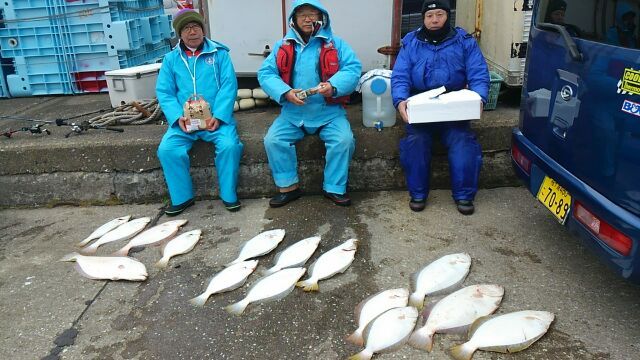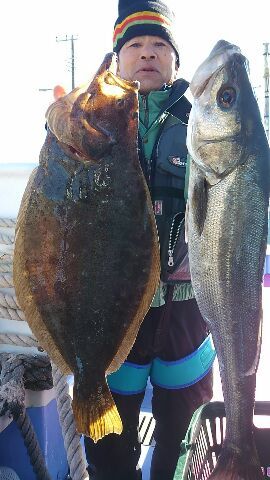 外房大原港~ヒラメに出船しました(^^)vポイントは太東沖ε=ε=(ノ≧∇≦)ノ水深は10m前後を狙いました( ☆∀☆)イワシ群れありd=(^o^)=b朝一に、大きさ3.0kgのヒラメをゲット\(^-^)/その後、マトウも釣れました(^^ゞ 明るくなると、イワシの群れがバラつき初めて(^o^;)単発反応に(・・;)日中になると大きさ4.3kgの大型ヒラメ\(^-^)/3.3kg・2.5kg・ソゲと釣れてd=(^o^)=bマゴチも混じり、楽しめたと思います(^^)v釣り情報の取材もありましたが、いい釣行になったと思います(^^)d出船予定です………………↓……………只今、イワシ海遊中<゜)))彡<゜)))彡<゜)))彡大型ヒラメ到来ρ( ^o^)b_♪♪明日・1月8日の日曜日は沖釣りフェスタに出船いたします(^^)v勇盛丸はヒラメに出船いたしますd=(^o^)=bおかげさまで満船となりました~\(^-^)/ありがとうございますm(._.)m1月9日の月曜日・成人の日はヒラメに出船いたしますp(^^)q今のところ2名のお客さんから予約を頂いておりますm(._.)m1月10日の火曜日はマハタに出船いたしますd=(^o^)=b今のところ2名のお客さんから予約を頂いておりますm(._.)m1月14日の土曜日はマハタ&鬼カサゴに出船いたします(^^)v1月22日の日曜日はマハタ&ヒラメに出船いたしますd=(^o^)=bおかげさまで満船となりました~\(^-^)/ありがとうございますm(._.)mその他の日はまだ予約が入っておりませんので(^_^;)出船日も含めて、お問い合わせをお待ちしておりますm(._.)mお知らせです………↓………12月1日~投入時間が6時になりました(^^ゞ集合時間は5時にてお願いしますm(._.)m探見丸 スマホ対応アンテナ搭載しましたシマノ探見丸 スマートフォンで見る事が出来ます無料アプリ配信中です(^^)v勇盛丸では、ヒラメヒラメ&マハタに出船いたしますd=(^o^)=bまた希望によりオニカサゴのリレー釣り一つテンヤマダイのリレー釣りなどの企画もいたします(^^)v勇盛丸は、ジギング専門ではないのですが(;^_^Aジギングも乗り合いで楽しんでもらえたら、嬉しいですね(^^)bその他、お問い合わせは090 2932 35750470 62 2086までお願いいたしますm(._.)m大原港の優漁船の休日は、第一・第三の月曜日です(^_^)y-゜゜゜゜゜お客さんへのお願いです……↓……勇盛丸では、常にお客さんの安全を考えて操業しております【安全1番・楽しさ2番・最後に釣果はついてくる♪♪♪】《文明堂カステラcmのパクりですが………(^-^ゞ》をテーマに命を預かる商売ですので、いつも慎重かつ冷静な操船を心掛けておりますその為には、お客さんのご協力が不可欠ですので生意気な言い方かもしれませんが海の上では、マナーと船長の指示を必ず守ってくださるよう、お願いいたします