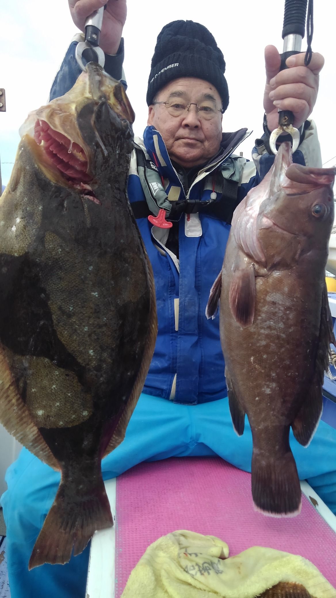 外房大原港~マハタ&ヒラメに出船しました‼️✌️ポイントは太東沖~大原沖⛵️⛵️⛵️水深は50m~26mを狙いました!😉朝の内はキントキが多数に、マハタの型😊 その後は、水温が低下し、濁り潮になってしまい😵当たりなく😣移動🚢🚢🚢また移動🚢🚢🚢終盤やっと良いポイント入り👍️小マハタ~1.3kg‼️ ヒラメ1.2kg~1.6kg‼️ その他トラフグ カサゴ が釣れました‼️😌出船予定です…………↓…………2月4日の火曜日はヒラメに出船いたします✌️今のところ2名のお客さんから予約を頂いておりますm(._.)m3月1日の日曜日 ヒラメ釣り大会\(^^)/勇盛丸は定員14名で募集させていただきます今のところ13名のお客さんから予約を頂いております😆残り1名となりますご予約お待ちしておりますm(._.)m今後の釣り物です…………↓…………ヒラメ&マハタ✌️鬼カサゴ (初心者も安心 電動貸し道具あり) メヌケ (夢ではない提灯行列)激流だった潮が落ち着いたのでチャンスです一つテンヤマダイ (テンヤ カブラ タイラバゲーム) お知らせです…………↓………12月からは集合時間が4時50分投入時間が6時となりました😌探見丸 スマホ対応アンテナ搭載しておりますシマノ探見丸 スマートフォンで見る事が出来ます無料アプリ配信中です(^^)v勇盛丸は、ジギング専門ではないのですが(;^_^Aジギングも乗り合いで楽しんでもらえたら、嬉しいですね(^^)bその他、お問い合わせは亘船長090 2932 35750470 62 2086までお願いしますm(._.)m大原港の優漁船の休日は、第一・第三の月曜日です(^_^)y-゜゜゜゜゜お客さんへのお願いです……↓……勇盛丸では、常にお客さんの安全を考えて操業しております【安全1番・楽しさ2番・最後に釣果はついてくる♪♪♪】《文明堂カステラcmのパクりですが………(^-^ゞ》をテーマに命を預かる商売ですので、いつも慎重かつ冷静な操船を心掛けておりますその為には、お客さんのご協力が不可欠ですので生意気な言い方かもしれませんが海の上では、マナーと船長の指示を必ず守ってくださるよう、お願いいたします