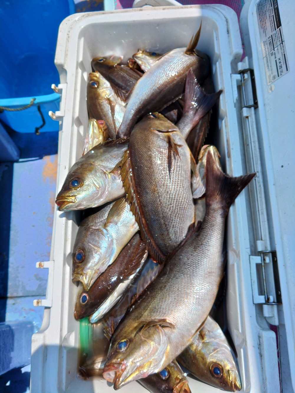 外房大原港~Lightタックル・イサキに出船しました‼️⛵️💨💨💨ポイントは大原沖🛥️💨💨💨水深は20m~30mを狙いました❗⚓️⚓️⚓️朝の内は、単発ながら大型主体にポツポツと釣れました‼️👍️その後は当たりが悪くなったので😅 色々とポイントを移動🚢💨🚢💨🚢💨拾い釣りをして、シマアジ 0.8kgをゲット✌️終盤はポツポツと釣れて、 たまにダブルもありました🐟️🐟️時間までに イサキ 3匹~35匹‼️ その他シマアジ マアジ メジナ マダイも釣れました😁出船予定です………↓………9月1日からマハタ&ヒラメが解禁となります⛵️💨💨💨明日・6月24日の金曜日はLightタックル・イサキに出船いたします🚢💨🚢💨🚢💨今のところ5名のお客さんから予約を頂いておりますm(._.)m6月25日の土曜日はLightタックル・イサキに出船いたします⛵️💨💨💨おかげさまで満船となりました~\(^^)/ありがとうございますm(._.)m6月26日の日曜日はLightタックル・イサキに出船いたします🛥️💨💨💨今のところ5名のお客さんから予約を頂いておりますm(._.)m6月27日の月曜日は根魚五目に出船いたします🛥️💨💨💨今のところ2名のお客さんから予約を頂いておりますm(._.)m7月1日の金曜日はLightタックル・イサキに出船いたします🛥️💨💨💨今のところ5名のお客さんから予約を頂いておりますm(._.)m7月2日の土曜日はLightタックル・イサキに出船いたします⛵️💨💨💨今のところ1名のお客さんから予約を頂いておりますm(._.)mイサキの本格シーズンヘ突入です😆梅雨の卵抱イサキを是非ゲットしてください‼️🐟️🐟️🐟️🐟️🐟️🐟️🐟️🐟️🐟️🐟️🐟️🐟️🐟️🐟️🐟️🐟️🐟️🐟️🐟️🐟️今後の釣り物と出船予定です………↓……6月はLightタックル・イサキ一つテンヤ・タイラバをメインに出船いたします‼️⛵️💨💨💨その他根魚五目(多彩な釣り物で楽める)🚢💨🚢💨🚢💨エギダコ(一つテンヤマダイとのリレーも🆗‼️)⛵️💨🚢💨 鬼カサゴ(初心者も安心 電動貸し道具あり) ⛵️💨💨💨💨💨💨💨メヌケ(夢ではない提灯行列)*要電話確認⛵️💨💨💨💨💨💨💨💨お知らせです…………↓………勇盛丸Tシャツオンラインショッピングで販売してますhttps://photos.app.goo.gl/F6XZRxXSsH9RCJ4A9https://tm-label.shop-pro.jp/?pid=166252021https://tm-label.shop-pro.jp/?pid=1677829632300円/着です💴是非覗いて見てください👀👀👀PayPay支払い可能になりました。探見丸 スマホ対応アンテナ搭載しておりますシマノ探見丸 スマートフォンで見る事が出来ます無料アプリ配信中です(^^)v勇盛丸は、ジギング専門ではないのですが(;^_^Aジギングも乗り合いで楽しんでもらえたら、嬉しいですね(^^)bその他、お問い合わせは亘船長090 2932 35750470 62 2086までお願いしますm(._.)m大原港の優漁船の休日は、第一・第三の月曜日です(^_^)y-゜゜゜゜゜お客さんへのお願いです……↓……勇盛丸では、常にお客さんの安全を考えて操業しております⛵️⛵️⛵️💨人数制限、船内消毒などの感染対策をして⚠️【安全1番・楽しさ2番・最後に釣果はついてくる♪♪♪】《文明堂カステラcmのパクりですが………(^-^ゞ》をテーマに命を預かる商売ですので、いつも慎重かつ冷静な操船を心掛けておりますその為には、お客さんのご協力が不可欠ですので生意気な言い方かもしれませんが海の上では、マナーと船長の指示を必ず守ってくださるよう、お願いいたしますm(._.)m