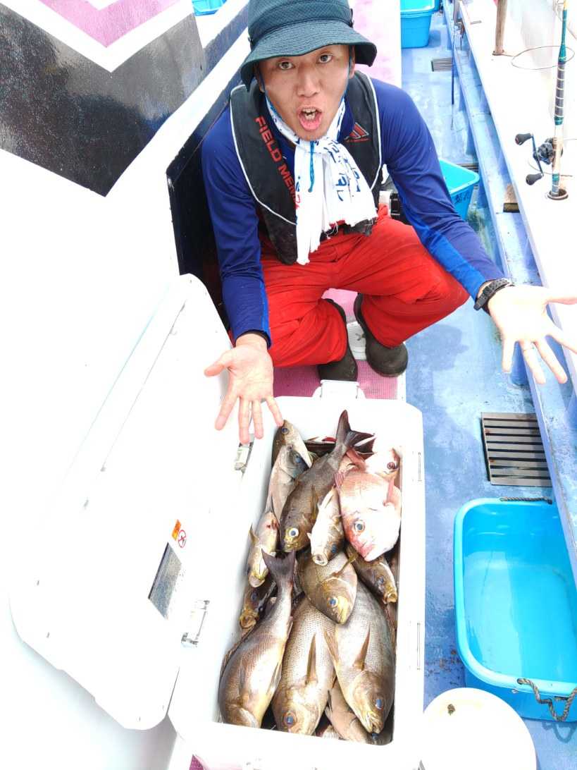 外房大原港~Lightタックル・イサキに出船しました‼️⛵️💨💨💨ポイントは大原沖🛥️💨💨💨水深は20m~30mを狙いました❗⚓️⚓️⚓️朝の内は大型中心に良く当たり👍️好調‼️\(^^)/次第に当たりが悪くなって来ましたが😵終盤に再び喰い始めて✌️中型中心に好調に釣れました‼️😆時間までに中型~大型最大38cmのイサキを16匹~45匹‼️\(^^)/その他 マダイ メジナ マアジも釣れました😁出船予定です………↓………9月1日からマハタ&ヒラメが解禁となります⛵️💨💨💨明日・6月22日の水曜日はLightタックル・イサキに出船いたします🛥️💨💨💨今のところ3名のお客さんから予約を頂いておりますm(._.)m6月23日の木曜日はLightタックル・イサキに出船いたします🚢💨🚢💨🚢💨今のところ8名のお客さんから予約を頂いておりますm(._.)m6月24日の金曜日はLightタックル・イサキに出船いたします🚢💨🚢💨🚢💨今のところ2名のお客さんから予約を頂いておりますm(._.)m6月25日の土曜日はLightタックル・イサキに出船いたします⛵️💨💨💨おかげさまで満船となりました~\(^^)/ありがとうございますm(._.)m6月26日の日曜日はLightタックル・イサキに出船いたします🛥️💨💨💨今のところ5名のお客さんから予約を頂いておりますm(._.)m6月27日の月曜日は根魚五目に出船いたします🛥️💨💨💨今のところ2名のお客さんから予約を頂いておりますm(._.)m7月1日の金曜日はLightタックル・イサキに出船いたします🛥️💨💨💨今のところ5名のお客さんから予約を頂いておりますm(._.)m7月2日の土曜日はLightタックル・イサキに出船いたします⛵️💨💨💨今のところ1名のお客さんから予約を頂いておりますm(._.)mイサキの本格シーズンヘ突入です😆梅雨の卵抱イサキを是非ゲットしてください‼️🐟️🐟️🐟️🐟️🐟️🐟️🐟️🐟️🐟️🐟️🐟️🐟️🐟️🐟️🐟️🐟️🐟️🐟️🐟️🐟️今後の釣り物と出船予定です………↓……6月はLightタックル・イサキ一つテンヤ・タイラバをメインに出船いたします‼️⛵️💨💨💨その他根魚五目(多彩な釣り物で楽める)🚢💨🚢💨🚢💨エギダコ(一つテンヤマダイとのリレーも🆗‼️)⛵️💨🚢💨 鬼カサゴ(初心者も安心 電動貸し道具あり) ⛵️💨💨💨💨💨💨💨メヌケ(夢ではない提灯行列)*要電話確認⛵️💨💨💨💨💨💨💨💨お知らせです…………↓………勇盛丸Tシャツオンラインショッピングで販売してますhttps://photos.app.goo.gl/F6XZRxXSsH9RCJ4A9https://tm-label.shop-pro.jp/?pid=166252021https://tm-label.shop-pro.jp/?pid=1677829632300円/着です💴是非覗いて見てください👀👀👀PayPay支払い可能になりました。探見丸 スマホ対応アンテナ搭載しておりますシマノ探見丸 スマートフォンで見る事が出来ます無料アプリ配信中です(^^)v勇盛丸は、ジギング専門ではないのですが(;^_^Aジギングも乗り合いで楽しんでもらえたら、嬉しいですね(^^)bその他、お問い合わせは亘船長090 2932 35750470 62 2086までお願いしますm(._.)m大原港の優漁船の休日は、第一・第三の月曜日です(^_^)y-゜゜゜゜゜お客さんへのお願いです……↓……勇盛丸では、常にお客さんの安全を考えて操業しております⛵️⛵️⛵️💨人数制限、船内消毒などの感染対策をして⚠️【安全1番・楽しさ2番・最後に釣果はついてくる♪♪♪】《文明堂カステラcmのパクりですが………(^-^ゞ》をテーマに命を預かる商売ですので、いつも慎重かつ冷静な操船を心掛けておりますその為には、お客さんのご協力が不可欠ですので生意気な言い方かもしれませんが海の上では、マナーと船長の指示を必ず守ってくださるよう、お願いいたしますm(._.)m