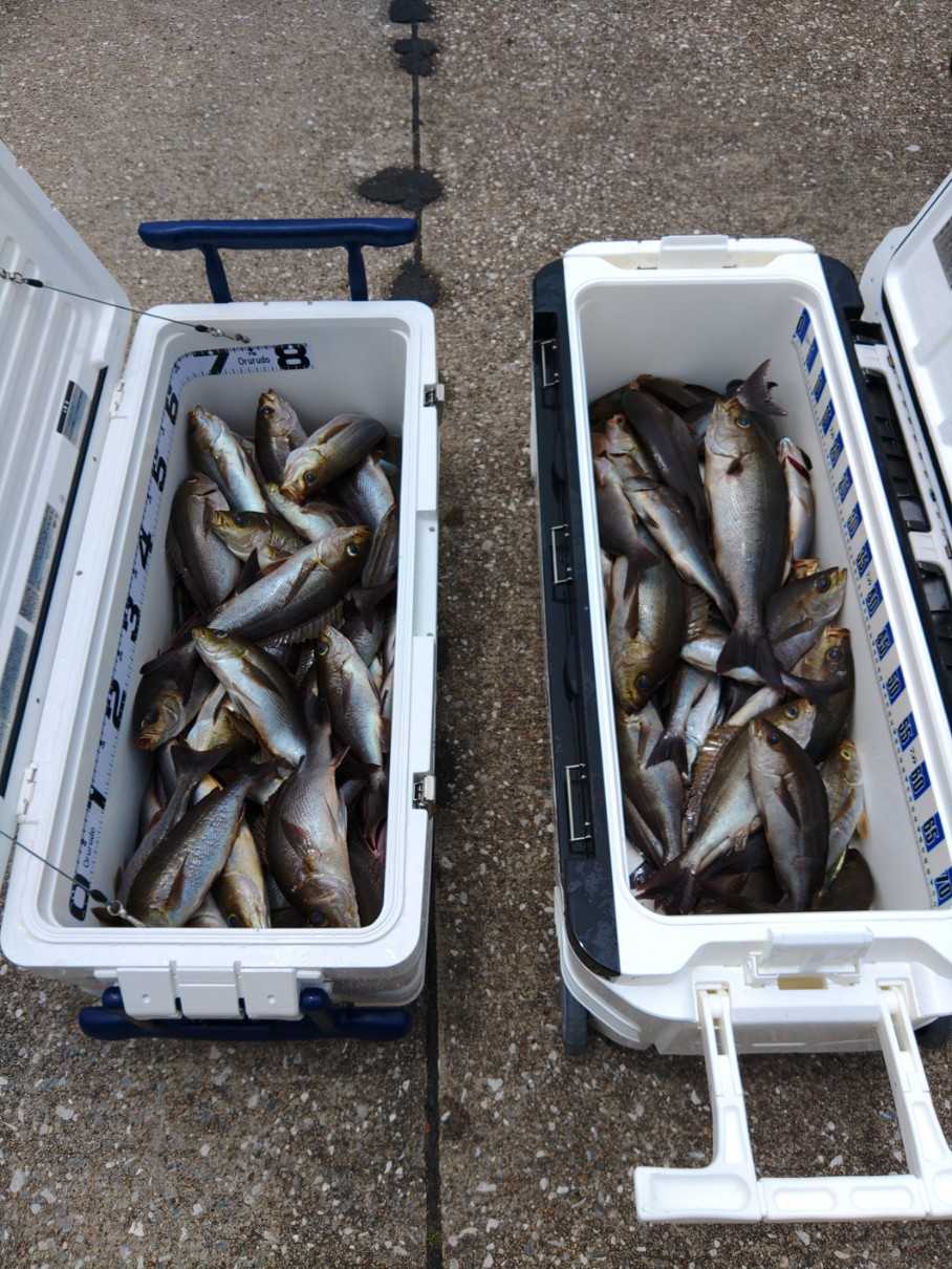 朝の内は、単発ながら大型主体にポツポツと釣れました‼️