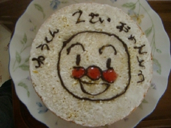 29日、息子が2歳になります(*^^*)当日に私の母と姑と息子の三人で、我が家に集まりお誕生日会をすることになりました。料理は義母の方で用意してくれるので、私はお掃除とケーキを用意するのみ。新聞に、好きな絵をプラス500円で描いてくれるというお店があるから迷っていたのですが何せ今は極度の金欠そこで、自分で作ることにしたものの、暫くケーキなんぞ焼いていなかったので、練習がてら作ってみることにしました。お菓子教室で習って、何度か練習していたのでスポンジは上手に焼けました。しかし、そこからが問題。何せ、センスなし&不器用が伴って、デコレーションなんぞ作れるわけがないしかも、スポンジをカットしたあとにシロップを塗るのですが、間違えて両面に塗ってしまったので、クリームをナッペしても、溶けてしまう・・・ということで、あまりお見せしたくないのですが実験台一号。(恥っ・・・)たまたま冷蔵庫にあったさくらんぼを種抜きし、裏の畑からミントを取ってきて飾りました。(少しはマシになりました。。。)っていうことで、練習して良かった・・・お誕生日の時には、もっとマシなケーキになるようにしなくては。まぁ、デコレーションが下手だから、そう変わりはないかもしれないのだけど。(;^^)ところで、えよんママさんからバトンを頂いたので、奥様バトンをやってみたいと思います(^^)Q.1 旦那様をどういう風に呼んでいますか?今は、パパ、かなぁ。。。昔はまーちゃんって呼んでいたけど・・・。時々、『ちょっとそこのオッサン』と呼ぶこともあり(汗)Q2、この人と結婚しよう!と決めた決め手は何ですか?決め手。何でしょう?若気の至りだから覚えてないわぁ・・・Q.3 あなたとダンナさまを色に例えるなら何色ですか?その理由は?色。。。難しいですね。。。なんだろう?空気の色(ナンダソレ。)いないと困るけど、いても特に何かがどうって訳じゃないからな。。。紫ってのもあるかも?変態色だよね、紫って。しょっちゅうではないけど、普通にシモネタ会話とかするから(;^^)Q4.今までにした史上最大の夫婦喧嘩はありますか?あるある。私の家の両親の前で私の悪口を大げさに言ったので。二段蹴りしました あ、でも、今はそんなことしてませんよっ。あれ以来、暴力はしてませんっ(笑)Q.5 一番得意な料理は何ですか?得意料理・・・なんだろう。モツ煮とか?(電気鍋を使えば誰でも上手にできるので、偉くも何ともない。)天ぷらは上手だねぇって母に褒められるから、天ぷら?基本的に料理って、本を見ながら作る私(;^^)大さじ1杯とか、ちゃんと量って作るんだよね~。意外と几帳面?(いやいや、かなり大雑把な性格なんだけども。)Q6、夫に直してもらいたい事。自分が直そうと思っている事は、どんな事ですか?無駄遣いをなくして、すっきりスマートに暮らしたいですねぇ。貯金しなくちゃ・・・パパは、いい人なんだけど、ちょっと冷たいんだよね。どんな人間でも自分が一番可愛いと思っているけど、うちの夫はそれが顕著な人。だから、どんな時も自分がいい立場に置かれるように考える。彼の実家が、『家族で誰か困った人がいたらみんなで手助けしてあげる』という意向が全くない家だったので、そういう点で時々戸惑いを感じます。例えば、小学生の頃、夫が足を骨折したそうですが、一度も送り迎えはしてもらえなかったそう。義母が免許ないので仕方ないですが、義父は『自分のことは自分で考えろ』と。家族揃って旅行という経験もないんだそうで・・・。経済的余裕がなかったわけでもなく、仕事が忙しかったわけでもないんです。義父は地区のスポーツチームに入ってあちこち出かけていますし、仲間と釣りに出かけたりもしています。でも、家族は連れて行ってくれたことがないのだとか。だから、夫もそういう点では、家族で何か一つのことをする、ということが苦手みたいです。義父の意向で家族がそういう考えだったのでしょうから、非難ではないですがただ、夫と接している中で、時々冷たい事を言われて悲しくなったりドキっとすることがあるんです。家族の絆とか、家族の助け合いとか思いやりとか、もう少しあればいいな。。。と思っています。長年積み上げてきたものだから、なかなか難しいとは思うんですけどね。Q.7 ご夫婦共通の趣味はありますか?二人揃ってパソコン(笑) これって趣味なのか?一人一台あるので、お互いパソコンに向かい合っている時は全然喋りませんが(笑)趣味ねぇ。。。夫の趣味はギャンブル全般だし、私はそういうものには全く興味がないし。。。何かあれば、本当にいいと思うんですけどね。。。Q8.二人でどんな老後を過ごしたいですか健康で、時々旅行したり、あとは普通の生活でいいです。孫の顔が見たいな~(笑)Q.9 夫婦の笑えるズッコケネタをどうぞえ~っと。。。 あれは結婚式の時。普通は、新郎新婦はお酒を差されても飲みませんよね。下のバケツにこっそり捨てるとか。ところが、うちの旦那、何