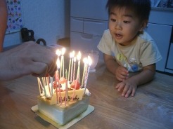 あー、ブログ久しぶりっ。ついつい、『明日こそ書くぞ、明日こそ』と思っていたら、もう二週間も過ぎてしまった、、、。29日、お誕生日会しましたよ~。姑が仕出の料理を頼んでくれて、ケーキは結局実家母がお店に頼んで(作るって言ったんだけどなー)、準備完了。お料理を食べて、昔に撮った8ミリテープを見ようと、テープを探していると・・・!!!!!!なんと、侑弥がテープを壊してる(ToT)泣くに泣けず、叱るに叱れず(両母がいたからね)、途方に暮れて・・・・。その晩、ダンナに見てもらったけど、やはり直らず。カメラが壊れてしまいかねない!と、修理してくれるところを探すことに。すると、ビデオテープ診療所なるお店を発見。すぐに、テープを送ってみてもらうことに。調べてもらって、料金が5,800円。かなり痛い出費だけど、成長記録のテープだし、また撮るわけにもいかないので、お金を払って修理してもらうことに。でも、よく考えたら修理してくれる人がいるだけ幸せよね。1週間ほどして、DVDにコピーされたものが送られてきた。見ると、シーン別にきちんと分割されていて、タイトルがつけられていた。メールには、『早めにDVDにコピーをして、テープのまま再生を繰り返さないように』と書かれていた。ほんとだよ、、、。痛い出費だけど、1年前に戻って映像を撮るわけにいかないし、直してもらえてよかったです。DVDへの編集作業は早くやろうと、心に誓った私でした、、、。