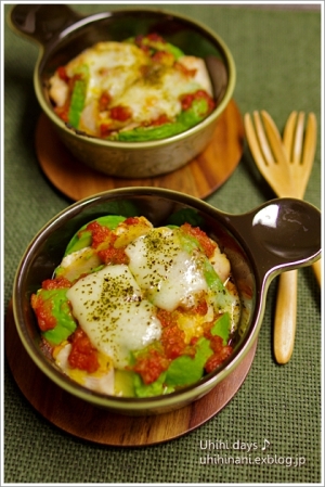 塩麹蒸し鶏とアボカドのトマトグラタン料理名:塩麹蒸し鶏とアボカドのトマトグラタン作者: うひ0507■材料(2人分)鶏ムネ肉 / 1枚 270g○塩麹 / 大さじ2○砂糖 / 小さじ2トマト缶 / 200gたまねぎ / 小1個にんにく / 1かけドライバジル / たっぷり塩・ブラックペッパー / 適量オリーブオイル / 大さじ1アボカド / 1個スマートチーズ / 4枚■レシピを考えた人のコメントトマトソースとアボカドもけっこう良く合います!詳細を楽天レシピで見る→
