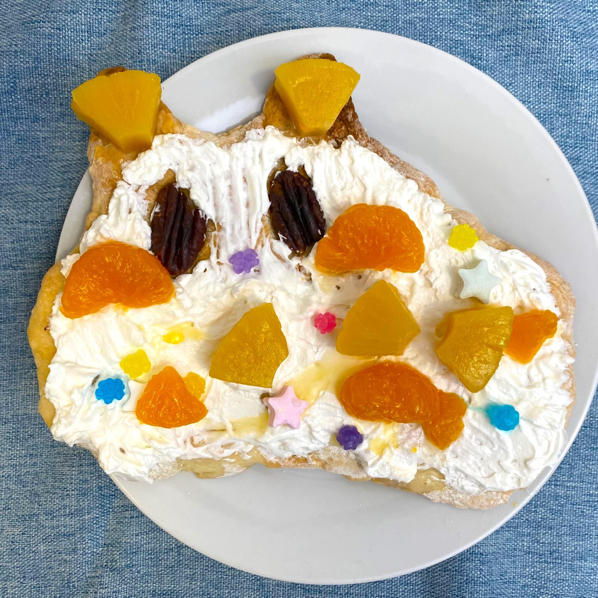 ふっくらもちもち♪くもりんデザートピザ♪料理名:デザートピザ作者: サンサンキッズTV■材料(1〜2人分)【1枚分】 / ★小麦粉 / 150g★砂糖 / 小さじ2★ドライイースト / 3g★オリーブオイル / 小さじ2★塩 / ひとつまみ★少し熱めのお湯 / 80ml【トッピング】 / クルミ(くもりんの目) / 2粒ミックスフルーツ缶(パウチでもok♪) / 1缶生クリーム(らくらくホイップ) / 1本金平糖 / 10粒くらい(お好みでok!)ラムネ / 3-5個(お好みでok!)■レシピを考えた人のコメント作って楽しい!食べて楽しい!くもりんも大好きなふわふわあまあまなデザートピザです♪詳細を楽天レシピで見る→