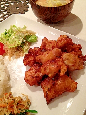 塩麹で鶏の唐揚げ料理名:塩麹の唐揚げ作者: ete6294■材料(4人分)鶏もも肉 / 600g程度塩麹 / 大さじ2強しょうが、にんにくすりおろし / 各1かけ醤油 / 小さじ1卵 / 1個片栗粉 / 大さじ5~6揚げ油 / 適当■レシピを考えた人のコメント塩麹でお肉がすごく柔らかに。。。詳細を楽天レシピで見る→