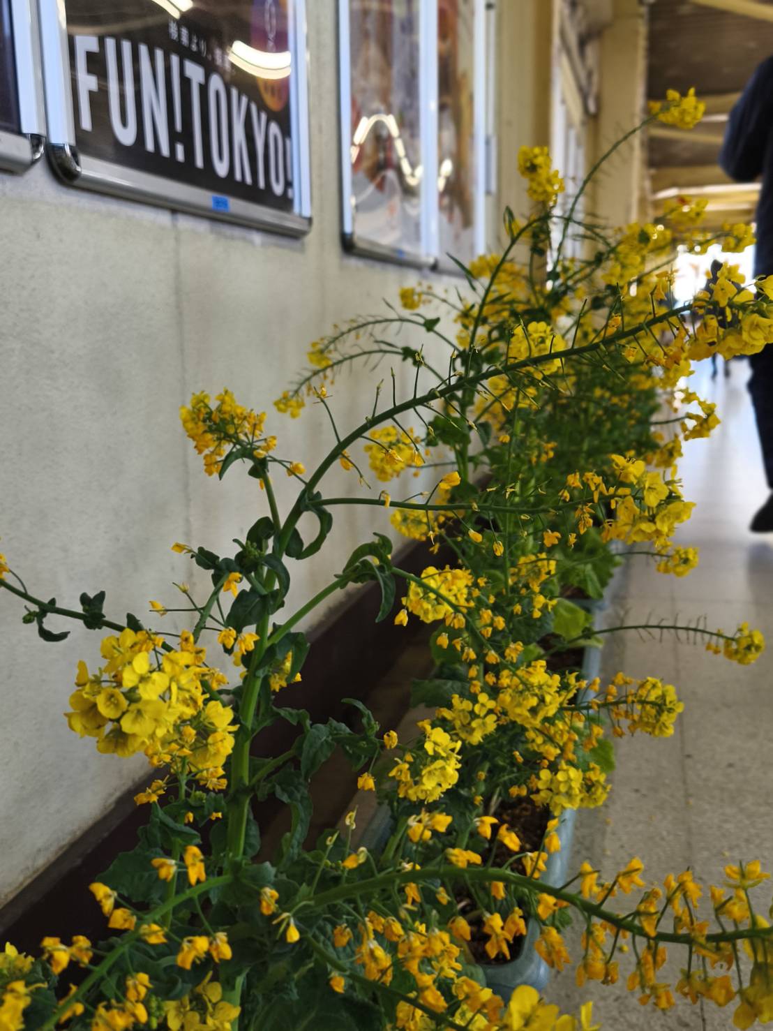 駅前では菜の花まつりのチラシを配布したり駅構内に菜の花が飾られてました。