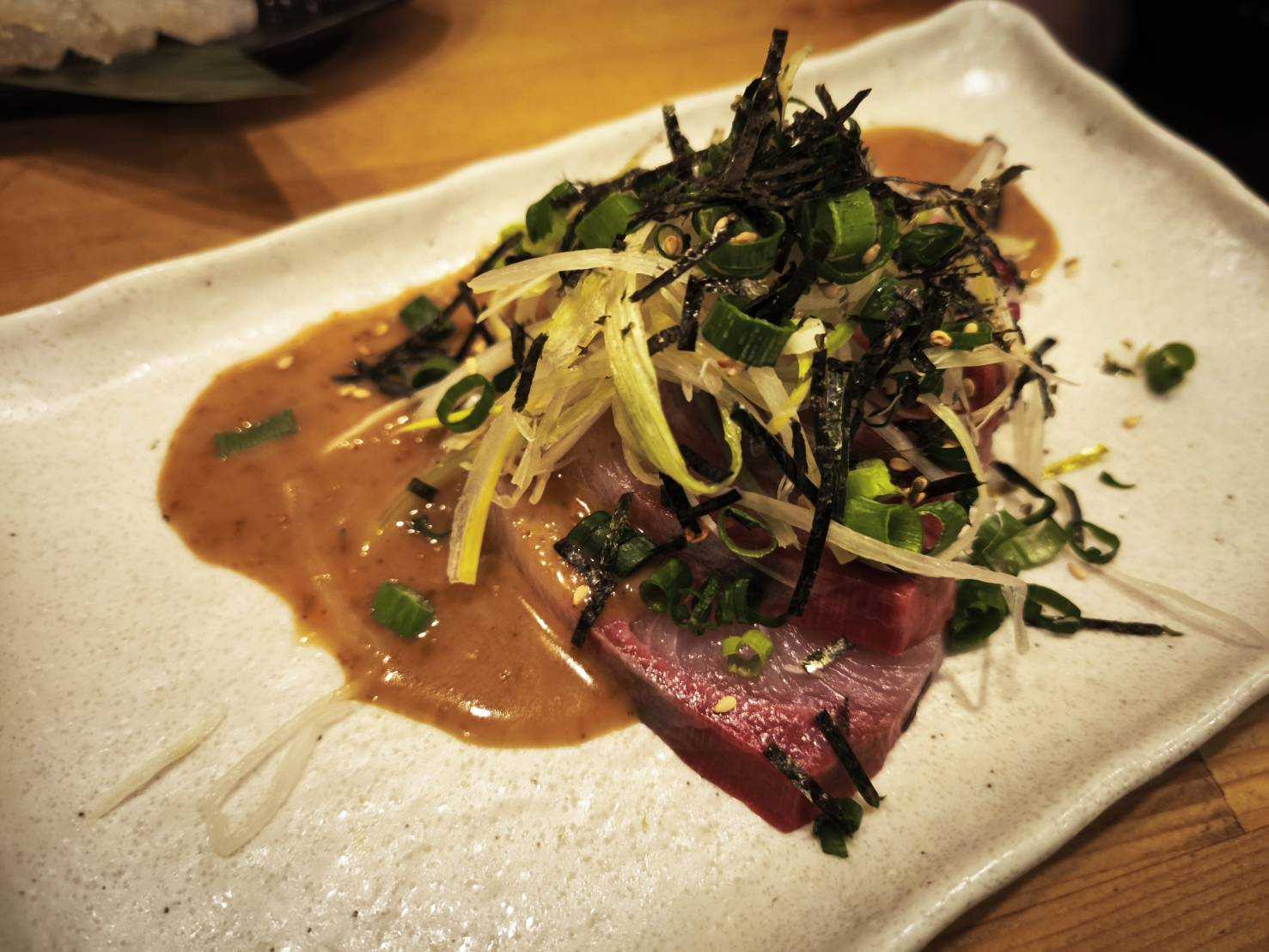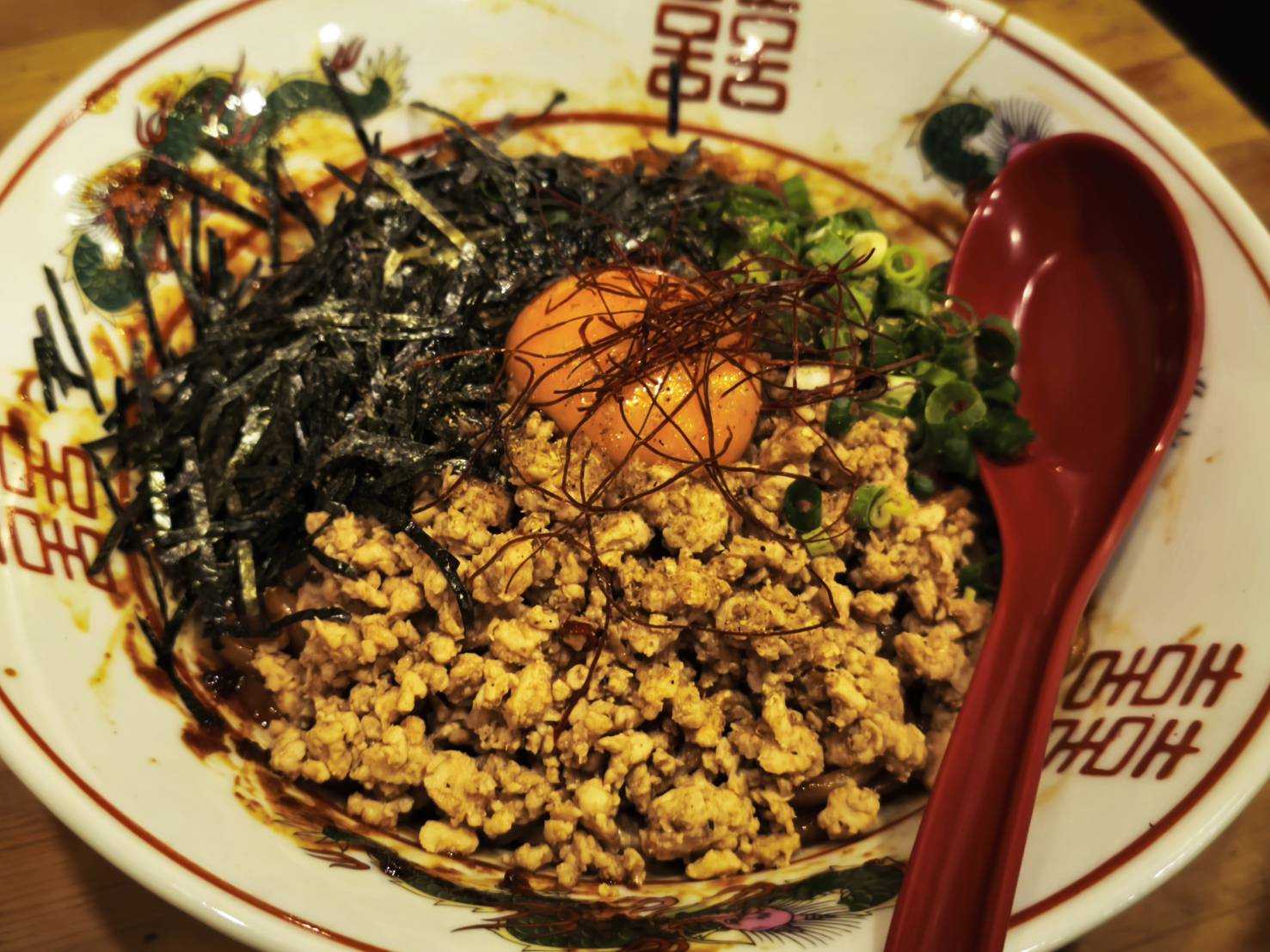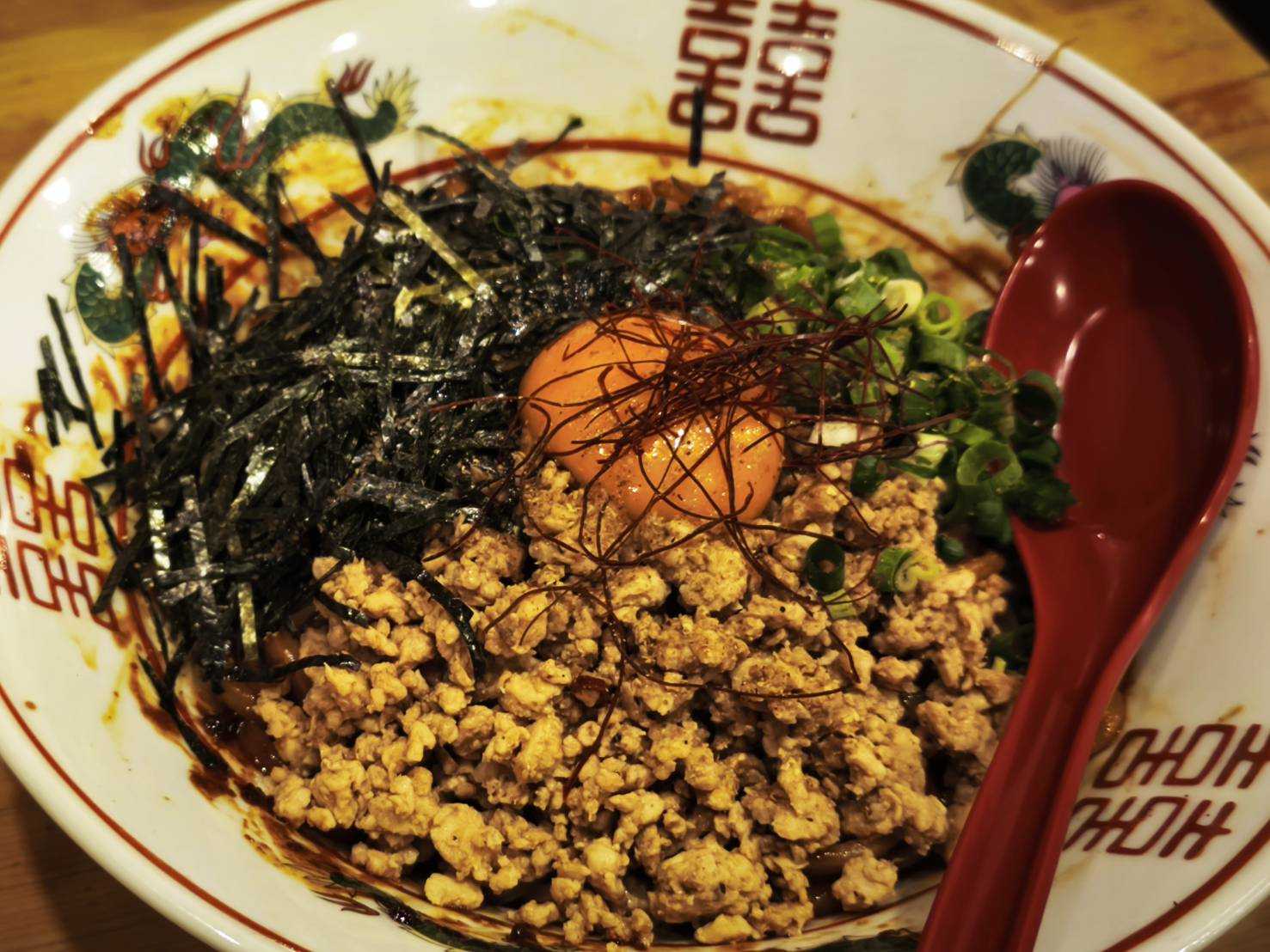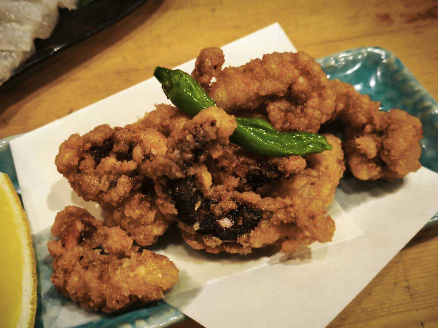 子持ちこんにゃくタコ唐揚げまぜそば青唐辛子と花山椒