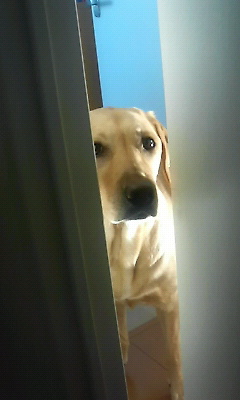 あんまりしつこくカリカリするので少~しだけ開けてあげると、鼻を突っ込みさらに少し開けてジーッと見ていました