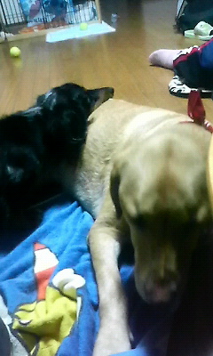 そのうち、ゆずのおケツにアゴをのせて満足そうに寝ていました(-.-)Zzz