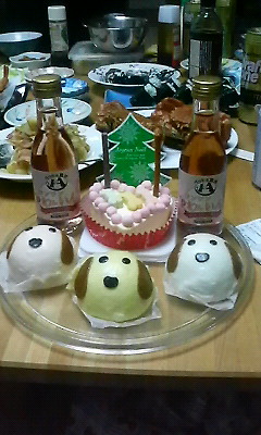 ケーキはレアチーズで犬マンは赤(アンコ)・黄(肉)・白(鰯つみれ)で、見た目も可愛くて食べさせるのがもったいないくらいでした(>_<)