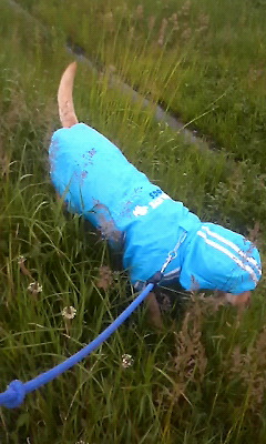 帽子のせいで視界が悪いらしくて看板にぶつかってました(;´д`)
