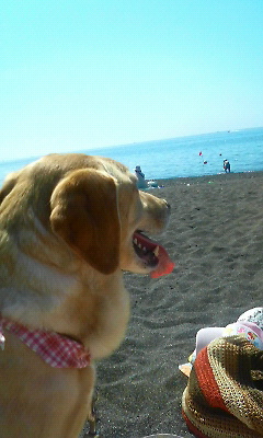 最初は波打ち際でシッポを丸めていたゆずですが、だんだん楽しくなってきたのか海に顔をつけるようになりました