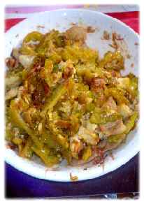 雑誌にのってるのって、ストーンの位置とか自分で考えるのとはやっぱりちがって素敵な配置ばかり・・・☆なので、真似をしてみましたっ!忠実に作ってみようって思ってたはずが、1本しか、真似てない(笑)あとは、アレンジしてみました(笑)ちょっとキラキラすぎて、気持ち悪いかも。。。そして、今日ゴーヤチャンプルをつくりましたっ!!こんな感じ↓(笑)盛り付け汚いけど・・・。