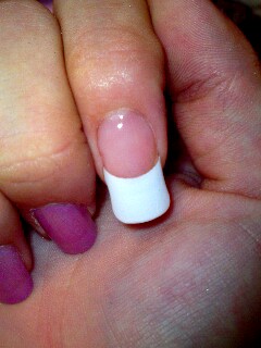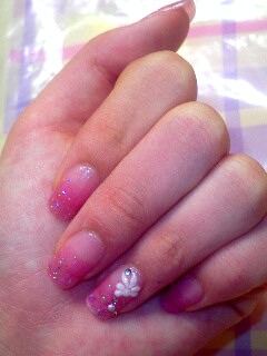 今日、ネットで注文していたジェルキットが柚家へ到着!!ワーイ!!バイト終わってから早速初ジェル開始!!チップオーバレイ・・・ってどうやるの??とか思いながらネイルテキスト見ながら格闘し、なんとかできあがりましたっ!こんな感じっ↓↓爪が広がってるように見えるのが・・・・・なぜ??チップのあわせ方まずかったのかなぁ。。。泣
