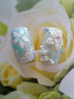 卒業制作のサンプルとして作ってみましたっ!!なんだか・・・久しぶりにチップchanたちと触れ合ったような・・・笑3Dのお花はやはり難しかった><。あとは。。。手書きレース、、、ってレースに見えるかしらっ><。NAIL VENUSに載ってたので、挑戦してみましたっ♪♪あと、ついにネイルスクールに行ける事になりましたっ!!初スクール日は31日☆ドキドキですが、がんばります♪♪