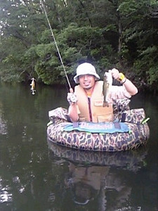 昨日は、先輩Oさんと後輩カツと元同僚のヤマちゃんとで行きました。初めてのダイレクトリールとスチールロッドを持ってフロータしてきました。