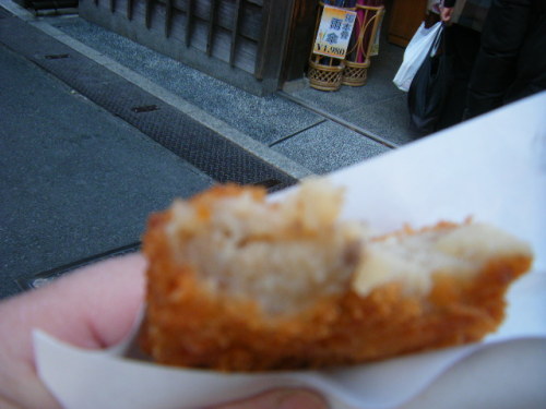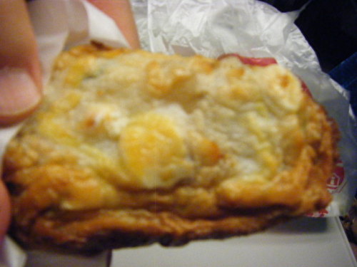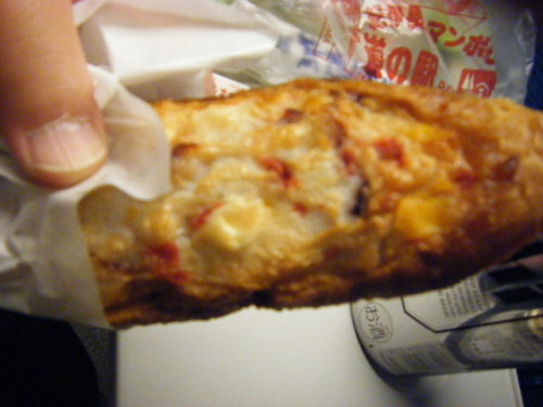 なんでもフランスパンに、魚のすり身やなんかを乗せて焼いたやつ。