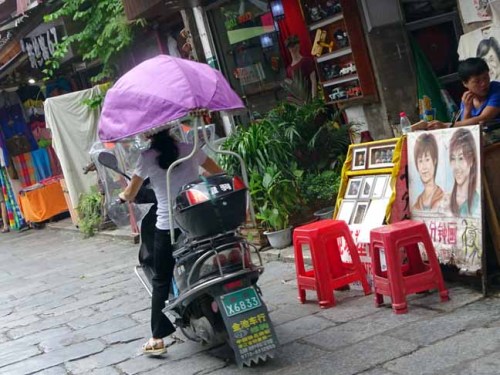 中国では、こんな傘付きのバイクや自転車が多かったです。