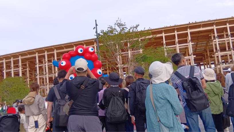 パソナ館はさざえのようなパビリオンで、上に鉄腕アトムが乗っています。