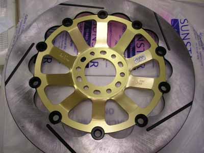 今日最後の書き込みは、ブロスのローターを諦めてサンスターのディスクローターを発注かけるようにバイク屋さんに依頼したのが水曜日。今日は金曜日。早すぎるじゃないですか~、お金をおろして引き取りに行きました。定価は6万円と消費税、送料などですが・・・店長!ありがとうございます!!!好きです、このデザイン。インナーは黒の方が良かったかな~?この一文だけならセクシーインナーみたい(爆)。軽いです。やっぱ、インナーはアルミがいいですな。市販車の殆どはプレス整形の鉄製だもんね。やっぱり日曜は忙しくなりそうです。早めに取り付けしちゃいましょ!!!今夜は豪華、カテゴリー三部作!