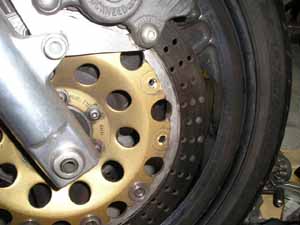 今夜もタイガース勝ちました!!!このローター狙ってます。サンスターのGSX1100S刀用320mmです。月曜に渋々外したブロスのローターピンは復元する事が出来なくなりました(詳細は以前の日記にあります)。仕方がないので刀のダイマグにフィッティング出来るローターを探す事にしました。と、言っても、おいらはサンスターが好きなのではじめから狙ってました。今日、バイク屋さんに発注かけるように依頼しました。依頼はしたもののホンダブロスのローターが320mmだったかどうか忘れてしまったのでネットで検索しました。結果は320mm見たいです。もし径が違っていて、返品できなければサポートの作り直しです。オフセット値は現在のブロスローターのオフセット値+数ミリ(自分で作ったので覚えてません)が同じであればボルトオンのはずです。もし違っていればキャリパーオフセットカラーの修正が必要になります。早く来ないかな~。ワクワク、ドキドキ・・・1枚3万円(税別)×2枚