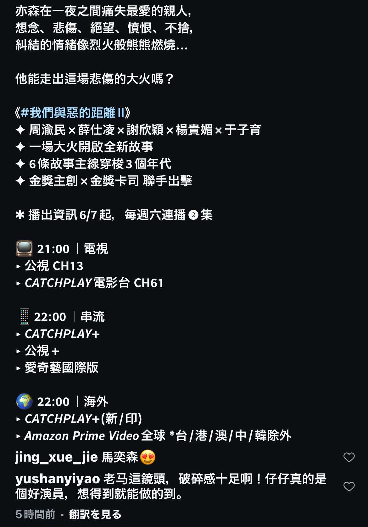 2025/06/07 今日から『我們與惡的距離2』 2025.06.07
