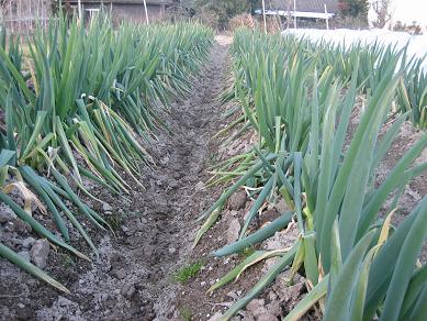 今日は、朝ゆっくりと始動。お米を分けてと久枝おばさんが言うので、米を精米して届けて、そこから、お茶を飲んで、寒いのでコタツに上がりこんで、ラーメンをご馳走になったりで、時間がかかって、油売りと同じように、遊んでしまいました。それから、さといもを陽気がよくなった昼に行い、ついでに青長大根も数本抜いて、産直へ。さといもも少なくなってまいりましたが、この冬、安定の売れ行きです。それで、今日はのんびりしてしまい、時は過ぎました。その間に、この前の、息子の怪我で、保険にいくらか加入してるので、該当しないか調べたり、問い合わせしたり。PTAのは、該当するよし、よかったです。デジカメも調子が悪いのがあり、保証期間であったので、メーカーにみてもらうことにしました。たまには畑の写真でも。今日は、根深ねぎ(白葱)の様子です。土入れはしましたが、2月までは抜けません。青さが白に変化してないからです。今は、まだ播種の時期にいたらずに(もっとも大根などはマルチ、トンネルでできますが)、ついのんびりしてしまいます。今日は、山にも行かなかったなあ・・・