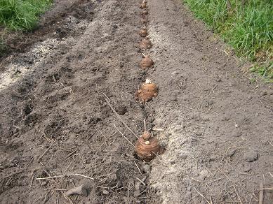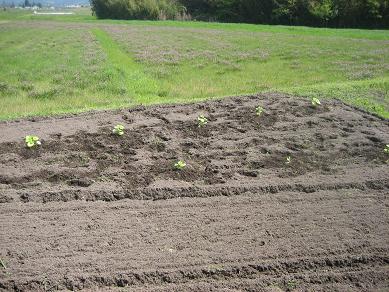 今日は、午前に、雨上がりで、田の畦草払いを行いました。徐徐に田んぼの稲作の準備も進めて行く季節になってまいりました。今年も美味しいヒノヒカリができますように・・・!その後に、ヤーコンを植えました。ブルクンさんに頂いたヤーコンを穴から取り出して、植えました。里芋とほぼ同じようにして植えました。株数は約30株です。次はなすの植え付け準備を行う番となってきました。その前後の半端な時間には人参の除草でした。まあまあの発芽状況になっていて、草を退治して育てたいところです。でも今日は、草払い、除草と疲れる作業でした。PTA総会、その前の授業参観、それから夜は子供の野球部の打ち合わせと忙しい夕方付近からあとになりました。明日は、なすの準備や畦草払い、たけのこなどの作業があります。