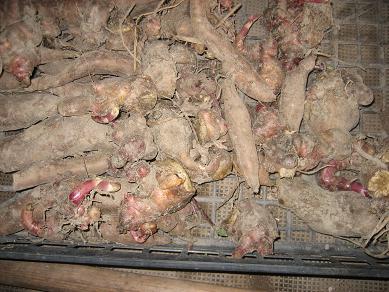 今日は、小松菜の収穫から始めました。このところ野菜の収穫が少ないでしたが、小松菜が取り入れ時期になってきました。それから残り少ないキャベツも採り、産直へ。その後は、里芋植え付け作業。今日は紫芋でした。今、4列終了しました。残りは全て、赤芽芋です。赤芽がやはり人気があります。また美味しいです。ogibabaさん、応援してくださいね。その後に、たけのこを掘っていたら、近くのケンキチおじさん、90歳も近くなってまいりましたが・・・趣味のえびねを湧水町の体育館での展示会に持ち込みたいので、運んでもらえないかと頼まれました。おじさんとえびね6作品を持ち込みました。4000円から百万円を越えるものまで、いろいろ価値はあるようですが、金賞、銀賞を勝ち取れば、賞金がもらえるそうで、楽しみのようでした。昼ごはんやガソリン代まで、頂いて、おじいさんがいかにこの展示会参加を楽しみにされているかがうかがい知れます。それからたけのこを掘りました。というのも、14日指定で、たけのこ25本を注文受けておりまして、それを揃えないといけないので、それも大きさをそろえてなので、倍の50本は掘らないと、質はそろいません。明日にかけてがんばります。明日はたけのこ作業中心、里芋作業ができるかな?