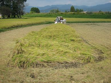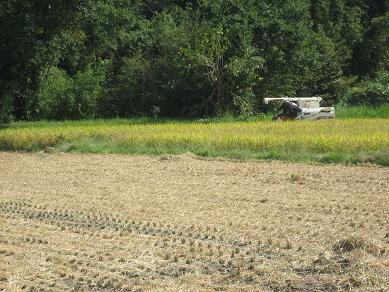 今日も、稲刈りでした。昨日は、おじいちゃんの計画がまずかったのですが、今日はしまったと思ったのか、自分でしきりに是正作業してました。でも昔の人って、難儀する方向へ方向へ、作業するのだから不思議です。まあ、そういうことで、作業は進んだのですが、今日の圃場は、飯米(縁故米などを含む)の田んぼ、できはよくて、量は申し分ないでした。あまりに草丈がよすぎて、コンバインが詰まったりして大変でした。今日の田んぼは1枚で43aなので、半分過ぎくらいしか進みませんが、上々の稲でした。あくまで、質は米すりしてみないと分りません。今日で86a/200aの終了です。田んぼの枚数では6.5/17です。あすも稲刈りです。今日は乾燥機は満量での稼動となります。