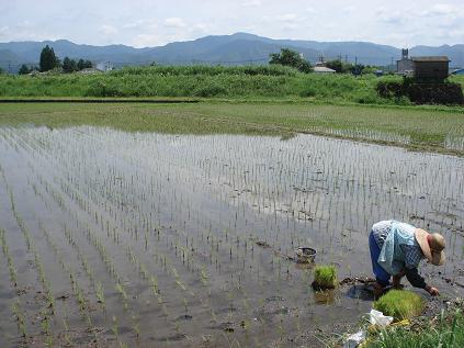田植えが終わってもまた田植え状況です。たにし様にはかないません。苗もだんだんなくなって、これでは初めから減収が約束されたようなものです。同じ田んぼにまた補植して、補植というよりまた手による田植えのような状況。あす田んぼに行ったらまたなかったりして??畦草も払わないといけないし。野菜は早朝と夕方に、なす、きゅうり、ピーマン、牛蒡、インゲンなどの収穫をするのがせきの山。たにしの居ない地区の方は余裕で野菜作業を進めているのに・・・あすの朝もニラを採り、なす、ピーマンの袋詰めなどから。その後はしかたないのでたにしを拾いに田んぼに行きましょうか?!