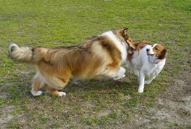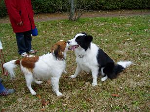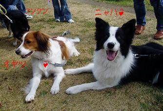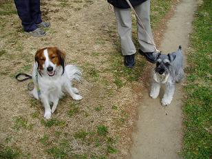 今日は、黒柴の『こはる』ちゃんファミリーと待ち合わせ♪待ち合わせ時間の少し前に待ち合わせ場所に行くと遠くにボーダーらしき姿を発見!良く見るとジョンの友達の『サム』君!この二人が揃うとプロレスに追いかけっこ!その他諸々凄い事に♪(笑)とっ言う間に早速プロレス開始!こんなに気の会うワンコも少ないよね~♪見てる此方までも楽しくなるもんねヽ(^◇^*)/ そこへ、待ち合わせ相手の『こはる』ちゃん登場~♪それでは、早速お座りをさせて3頭で記念撮影♪あれ??もう一度!o( ̄ー ̄;)ゞううむ何故か微妙な起ち位置ですな。もう一度改めてハイ♪記念撮影諦めましたハイ(; ̄ー ̄川 アセアセでも今回初めて会う『こはる』ちゃんは、まだパピーの黒柴♪スッゴク人懐こくて可愛いんだよね~♪キラキラお目目の可愛い顔をしてて思わずお家にもって帰ちゃおうかと(笑)『こはる』ちゃ~~ん♪こっち向いて~"а( ̄▽ ̄*) チョイチョイ...うわ~可愛い~・・てっジョン顔邪魔!σ(^_^;)アセアセ...気を取り直してもう一度挑戦!ついに激写に成功~♪とっ思たら何とブレブレ!(涙)『こはる』ちゃんごめんm(_ _"m)ペコリ次回は、きっと綺麗な写真を撮るからね。そんなこはるちゃんファミリーに綺麗とか嬉しい言葉を掛けられナデナデしてもらったジョン♪ちょっと羨ましいかも?・・・( ̄o ̄;)ボソッ今日は、優しいこはるちゃんファミリーと会う事が出来て本当に良かった♪可愛いこはるちゃんにナデナデ出来たし、それに雨男の私にしては、珍しく雨も降らなかったしね♪こはるちゃんこれからも宜しくね~(^^ )♪