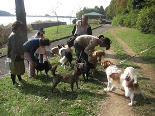 本日も写真情報提供ジョン母で御座います♪寒くなって来たのでS湖西岸に散歩を変えたチーム東岸!数日前遂にチーム東岸揃う事が出来ました♪この日は、ゴールデンの兄妹とも出会いウキウキムードのチーム東岸!この日は、久しぶりに会えた為か皆ハシャギまくり~♪場所を変えて皆で遊ばせジョンとサム君が走り出せばサンタちゃんも黙って居ない!(笑)ここで急に向きを変えたジョンの後ろを走ってたサンタちゃん!避けきれず思わずジャーンプ!そして最後に撮った集合写真!この写真を撮るにもそうとう苦労したらしい!(汗)サンタ・リンタちゃんこはるちゃんサム君これからも一緒に遊ぼうね~♪