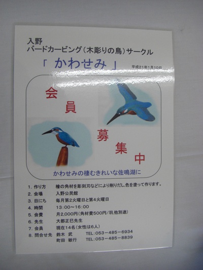 会員募集もしてますので佐鳴湖の鳥やバードカービングに興味の有る方は、気軽に行て見ると