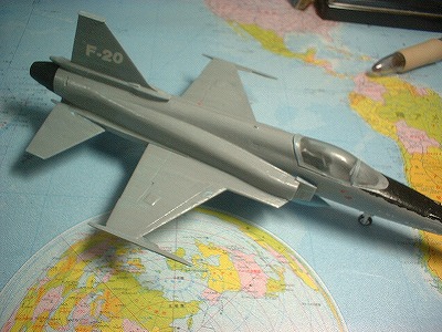 今日は、学校で友達に学校内で秘密基地つくろとかいわれて、しかも「場所は考えてあるから大丈夫だよ」。と言われてついて行ったら、すぐばれそうな場所だし、秘密基地て言ってるのにほかの友達に言ってるし、もう何なのよ!!みたいな感じで、学校から帰ってきました。(学校内で秘密基地つくろうという考えがおかしいんだよ。)さてこれ(上の文)は置いといて、本題に入ろうこれが(↓)F-20だー――――まぁこんな感じです。マスキングがちょっと難しかったです。次(明日)はまだ考えてないのでなにになるかわかりません。そうゆうわけなので楽しみにしていてください。