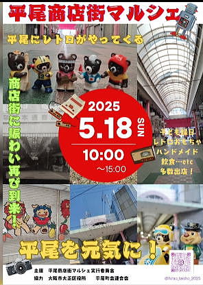 2025年5月18日(日曜) 「平尾商店街マルシェ」 大阪市大正区のアーケード商店街・サンクス平尾にて 喫茶・軽食、レトロなおもちゃ・グッズ等々の出店に混じって、レトロオテゴロまんがを並べる予定