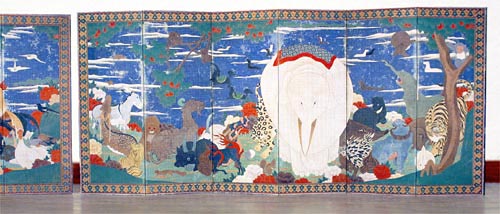 伊藤若冲筆 鳥獣花木図屏風(ちょうじゅうかぼくずびょうぶ)