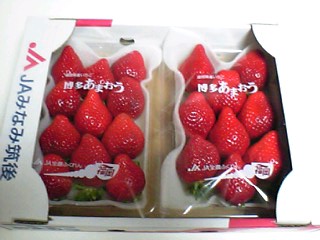 大好きないちご、2箱もいただきました。一箱は姉一家にお裾分け。残りの一箱は私と母で頂きました。やっぱりこの季節のいちごは美味しいね。先月食べたいちごと甘さも味の濃さも全然違う。あっという間に完食そういえば、最近コンビニでもケーキ屋さんでもイチゴフェアみたいなのやってるよね。あれ、いろんな種類あっていつもどれ買うか迷うんだよ。どれもこれも美味しそうだから。そうそう、知り合いでいちごが大嫌いって人いるんだよ!!なんか、あのツブツブがイヤなんだって。美味しいのに変わってるよね。