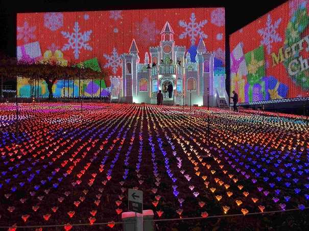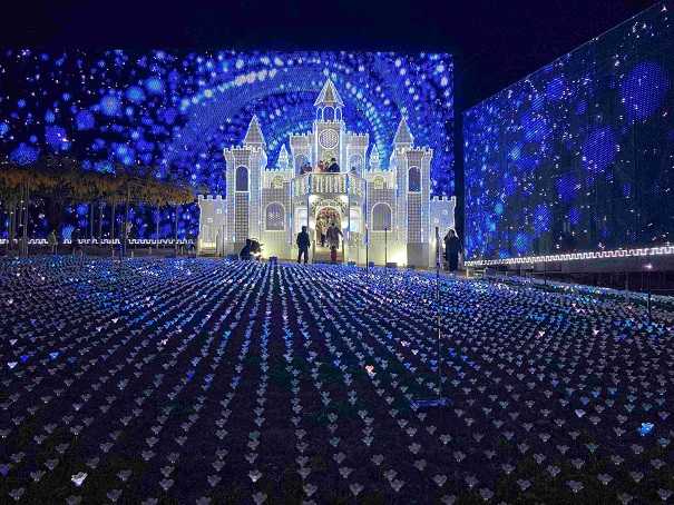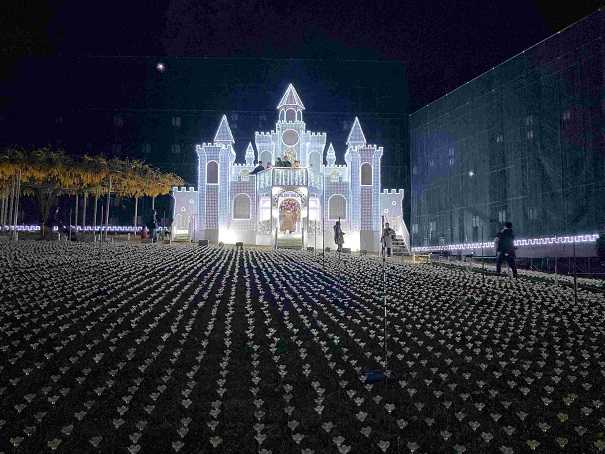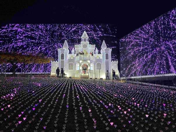 お城はイルミネーションの一部のように見えるけど、ちゃんと建物です。