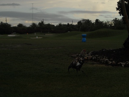 大変長らくお待たせいたしました。海外なんで、写真撮りまくり!それもデジカメで撮っちゃったので容量多くてブログに載りません。なので容量を小さくする作業から始め今日やっとタロフォフォ編が完成です。それでは早速、グアムでゴルフ!タロフォフォゴルフクラブ編をご報告いたします。グアム旅行3日目に待望のゴルフです。スタート時間は8:36分OUTコースです。ホテル発が7:26なので朝食を済ませロビーで待機。暫くするとあたしの名が呼ばれタクシーがお迎えに来ました。何と朝はタクシーで移動です。追加料金はありません。おくさんと二人でタクシーに乗り込み、いざタロフォフォゴルフへ出発!!30分位でゴルフ場に到着。受付を済ませカート乗り場へ・カートにはクーラーボックスが付いており、たっぷり氷が入っています。ミネラルウォーターとアイスティーが一人2本づつサービスで入っています。ここは18ホールスルーの為、暑さ対策は大事です。飲み物のサービスは有り難くきめ細かいサービスに感謝感激!タロフォフォゴルフ!ばんざーい!最高です。で、浮かれながらカートを運転し1番ホールへ向かいました。タロフォフォゴルフの全体的な印象はフェアーウィが比較的広く、OB1ペナを気にしないで思いっきり振れるホールが多いです。しかし時々トリッキーなホールが出現する為、油断は大敵。でも手入れが行き届いており大変良いコース状態でした。それでは早速1番ホールからご紹介。いつもの通り初めてのコースなのでレギュラーティーでプレイ開始。1番ホールは459YのPAR5、まっすぐで広くティーショットは少々打ち下ろし、グリーンは逆に打ち上げで距離感が難しいです。昨夜の雨で地面がぬかるんでおり、グリーン手前でチャックリ2回、結果5オン2パットダボスタートとなりました。続く2番は160Y、グリーン右手前に池があるPAR3!ここは何とか1オン成功!無難に2パットでパーゲッツ!3番はティーショットを失敗し又してもダボ!やばし!次の4番では柵の外にいる牛を横目に何とかボギー!続く5番ホール!ここはタロフォフォゴルフの名物ホール!池の真中にぽっかり浮かぶグリーンがある320YのPARー4です。talofofo NO5 TEEティーショットは打ち下ろしでやや右目のラフです。距離がないため、セカンドは残りは50y弱!でっ2オン成功!2パットのパーセーブ!talofofo NO5 GREENその後、6番ボギーで6オーバー!ボギーペースです。問題は上がり3ホール!7番で再びダボ!何とか踏ん張り8番、9番はボギーで、46で前半終了!まぁまぁな感じで後半に挑みます。その前にINに行く途中にあるカート場に寄り氷の補充とおしぼりのサービスです。日本でたまにある生乾きの雑巾臭いおしぼりと違いダウニーのかほりがする清潔なおしぼり登場!再びあたしたちは感謝感謝!!有難うータロフォフォー!また絶対に来るからね~!!!と心に誓いINコースへ向かいました・・・・INコースはOUTよりも若干起伏が多い印象があります。フェアーウィのディボット跡にはカエルがすっぽりはまっており涼んでいます。お願いだから邪魔しないでね・・ボール当たっても知らないからね~で、パチリ!タロフォフォは色んな住人がいます。あとで出てきますがニワトリやら人懐っこいアヒル?ほろほろ鳥?良く分かんないけど沢山いました。INは全体的に景色が良く特に稜線が素晴らしく見とれてしまいます。10番ホール545Y、PAR5。距離はありますがフェアーウェイは広く打ち下ろしでなので気持ちよく打てます。ここでは3オン2パットでパースタート!調子が出てきたような気がします。続く11番は打ち降しの左ドックレッグ339Y、PAR4!距離は短いですがティーショットの落としどころは狭く、アイアンでレイアップもありのホールです。しかし!ここは調子が良いので果敢にドライバーでチャレンジ!バシっと打ったボールはフェアーウェイ右にナイスショット!285Yショットセカンドもうまく距離が合い、ピン上1m!グアム初バーディー!ゲッツ!!!やしの木が最高のバーディーアングルです!!しかし12番ボギー、13番14番と連続ダボ、で帳尻合わせ・・とほほ・・・気を取り直し15番!330Y打ち降しのPAR4ティーショットはナイスショットでグリーン手前のクリークギリギリに着地!ほっ・・2ndショットはなんとシャンク!いつもの如く現れました。しかし何とか踏ん張りここはボギー、ここまで5オ-バー!おくさんが近づいても逃げないアヒル?ホロホロ鳥?良く分からないけどご挨拶・・でっ!いつも難関のラス3!16番、17番スコアを意識しすぎて又しても連続ダボ、いかんいかん!!ラスの18番!気合入れてティーショット!!はぁ~トップで左ラフ!途中ニワトリがご挨拶・・この子、あたしが2nd打つ瞬間、大きな声でコケコッコ~と鳴きエチケット違反しました。セカンドは最悪!クロスバンカーに入り残り120Yです。修理したての9番アイアン!クリーン打ちで一か八かで3オンを狙います。結果は・・これです。分かり難いですがピンの左上にボールが見えます。距離はありますが3オン成功!しかし距離あり過ぎ