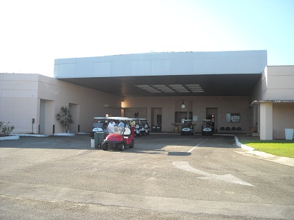 マンギラオゴルフクラブ!・・・とうとうやって来ました!今回の旅行のメインイベント!あいにくお天気は雨ですが、バス運転手の方はすぐ上がる雨だと言っています。ゴルフ場到着!・・タロフォフォに続きここにも住人が・・グアムで一番人気のゴルフ場、なので今日は2サムではなく組み合わせとの事・・カート場に行くと同じ年頃のご夫婦、今日一日お付き合いして頂くご挨拶をして和やかに1番ホールに向かいました。なんでもマンギラオはコースグリーンと同じ速さに練習グリーンも仕上げているらしく入念にパット練習する人が多いそうです。あたしも見習って練習です。マンギラオゴルフクラブの全体印象・・・行きはよいよい帰りはこわい・・そんな感じがぴったりでした・・・あたしの場合・・ということで早速マンギラオゴルフクラブのラウンド報告、始まり始まり・・今日はバックティーでのプレーです。お相手の方はもう何度もマンギラオはプレーしているベテランさんらしいです。(もしかしてメンバーさん?って感じでした)では早速、1番ホール、319YのPAR4から・・・1番はフェアーウェイは広めなのでティーショットのプレッシャーは少ないホールです。ドライバーの曲がりは気にせず振れましたが、残念ながらボールは右のクロスバンカーへ・・バンカーショットは何とか旨く打て、グリーンの左奥につける事ができ、そこからアプローチが寄り、3オン1パットのパー!・・絶好のスタートとなりました。続く2番は374YのPAR4・・2番も1番同様フェアーウェイは広いですがきちんとティーショットを打たないとセカンドはミドルアイアンが必要になるホールです。あたしはと言うと・・しっかりミドルアイアンで3オン・・2パットのボギーで終了!3番ロング478YのPAR5ロングを迎えバックティーの距離を実感・・だんだん距離が長く感じられドライバーに力みが・・ボールがこのホールを境に左右に曲がりばらつき始めました。結果5オン2パットダボ!アイアンもおかしな感じ・・やばい!!4番、5番、6番と4連続ダボ・・いかん!!あせればあせるほどボールは言う事を聞いてくれません。ドライバーが不調のまま7番を迎えました。7番414YのPAR5、左側にはグリーン手前まで池が続きます。距離が短いので挽回するチャンス・・しかし無情にも2連続池ポチャ・・7オン2パットの9!!続く8番、ここは173YのPAR3・・ここも力みがありティーショッットはダフリ・・ガードバンカーへ・・しかも目玉・・2ndは目玉から脱出するだけでしたが幸いにもバンカーの平らな場所で止まりました。なんとか3打目を寄せ、2パットのダボ・・もうダボが止まりません・・マスターズに初めて出場する日本の選手は皆、こんな感じでプレーしているのだろうなとふと思いました・・OUT最終の9番543YのPAR5は立ち直れないままトリプル・・ヘロヘロでスコアは1パー、5ダボ、1トリプル、+5で19オーバーの55・・試練はINへ続く・・