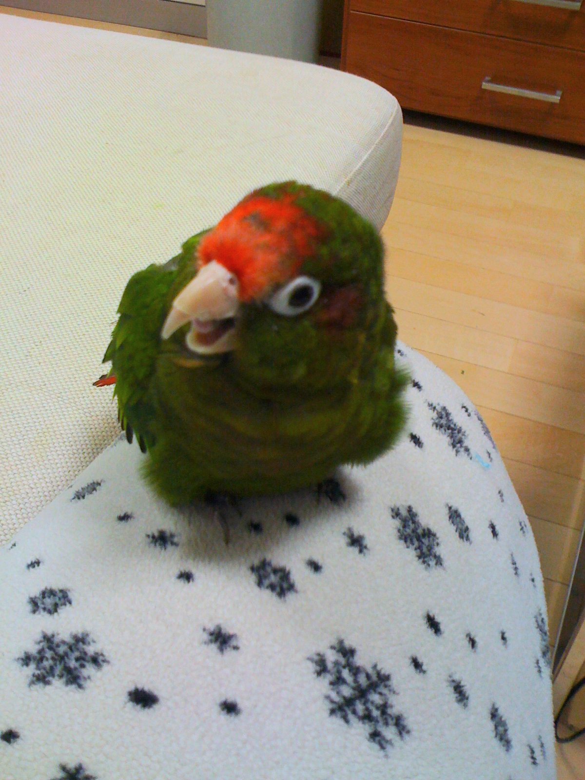 はじめまして!りんちゃんです。ズアカウロコインコの女の子、8歳。人間でいうと中年ですいちおう元気にすくすくとおひとりさまで育ってきましたが、今年になって、突然てんかんと思われる発作が出てくるようになってしまいました…一時期病院でお薬をもらったりしていたんですが、あまり飲んでいるだけでも変わらないので、今は生活の中で発作をおさえるように気をつけています。ソファでくつろぐおっとの足の上にのっかってまっふりするのが大好きな、そんなりんちゃんには、まだまだ長生きしてもらいたい。そう思って日記をつけることにしました。よろしくお願いします