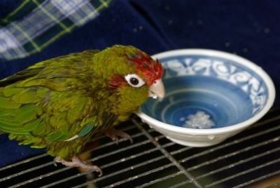 りんちゃんは、私がごはんがまを開くと「ぴうぴうぴうぴう」と大騒ぎします…そう、お米が欲しいのです…こうやっていつも小皿でお米をもらうと、いちもくさんにぱりぽりと食べながら「おいしいーーーっ!」と鳴きます(汗)日本でよかったねぇ(笑)