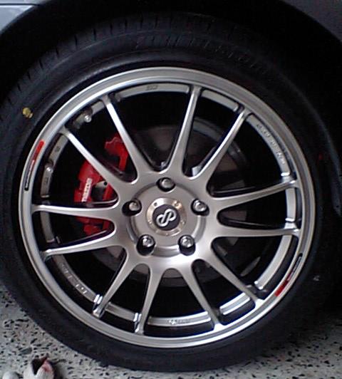 さっそく履かせてみましたブレーキが丸見えですディスクがもう一回り大きければなぁ純正ホイールのオフセットが55に対して、新生ホイールのオフセットは45ですフロントはギリギリでしたリアはちょっと余裕があるかな?新しいタイヤはいいですねぇ以前がツルツルだったので、安心感があります値段相応の価値を見出せるかな?近所の公園でパシャコ足元が引き締まりました!(デジカメ買おうかなぁ・・・)走った感想~ロードノイズは減ったというよりボカされた感じ?マフラーの音が以前よりハッキリ聞こえるようになりました軽量ホイールの影響だと思うのですが路面の段差に非常に敏感になりましたダンパーを固くしようかと思いましたがせっかくの静寂用タイヤなので、柔らかめの設定に変更しばらくは細かいチューニングに時間がかかりそうですコーナーのインとアウトの感覚が全然違います新品タイヤとの相乗?もありキビキビと曲がってくれます効き過ぎる感じもするので、慣れるまで気をつけます予想以上、期待以上の変化だっただけにまるで別物の車のようです少し遠出してみようかな~